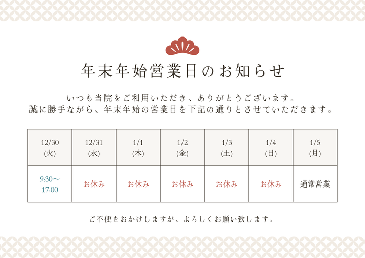 月~金 9:30~12:30 15:00~20:00 土 8:30~12:30 |